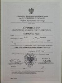 Ukończyła pedagogikę elementarną z terapią oraz pedagogikę ogólną na Uniwersytecie im. Adama Mickiewicza w Poznaniu. Swoją edukację kontynuowała na studiach podyplomowych z Form Taneczno Gimnastycznych i Fitness na Akademii Wychowania Fizycznego w Poznaniu.